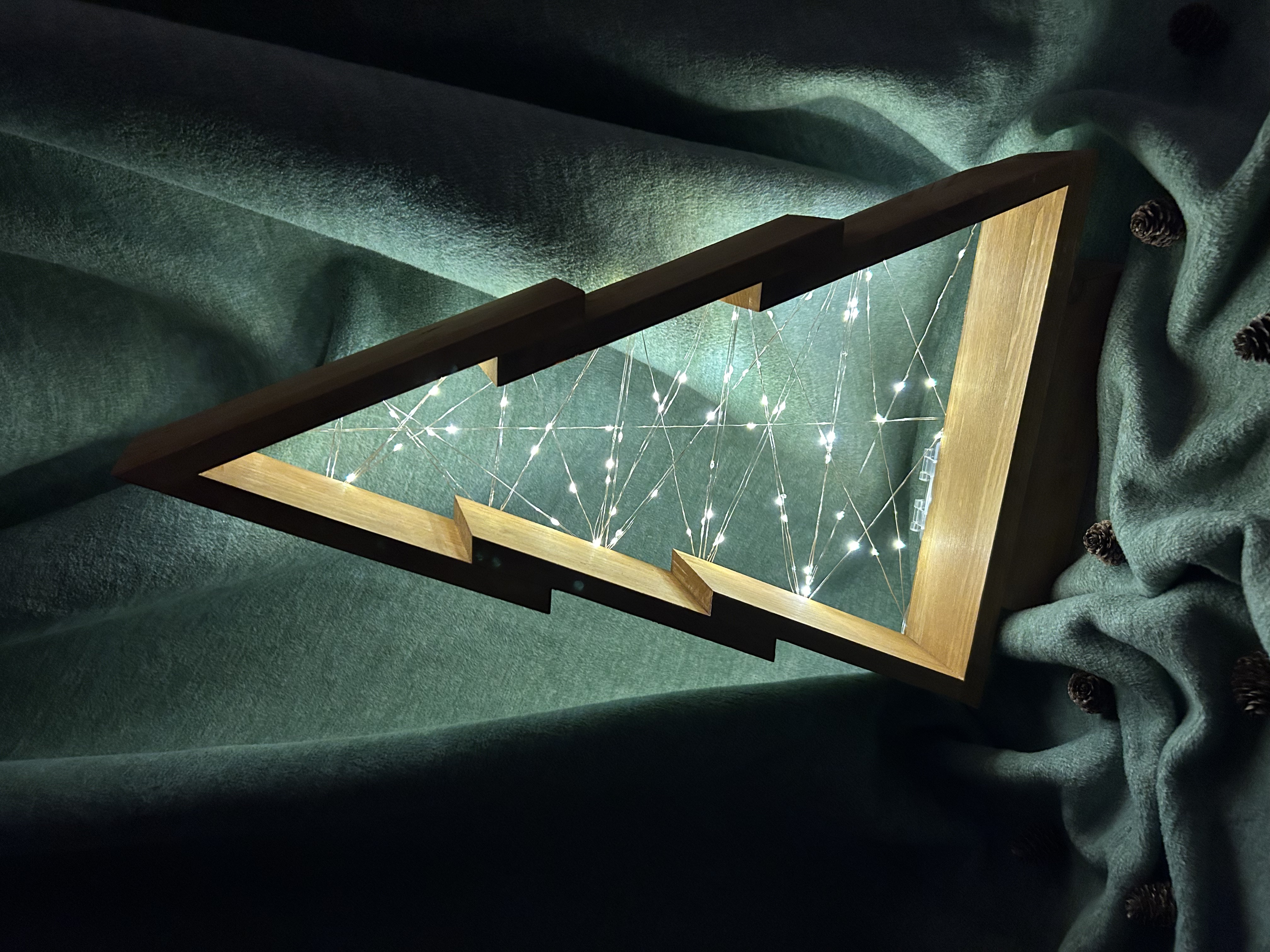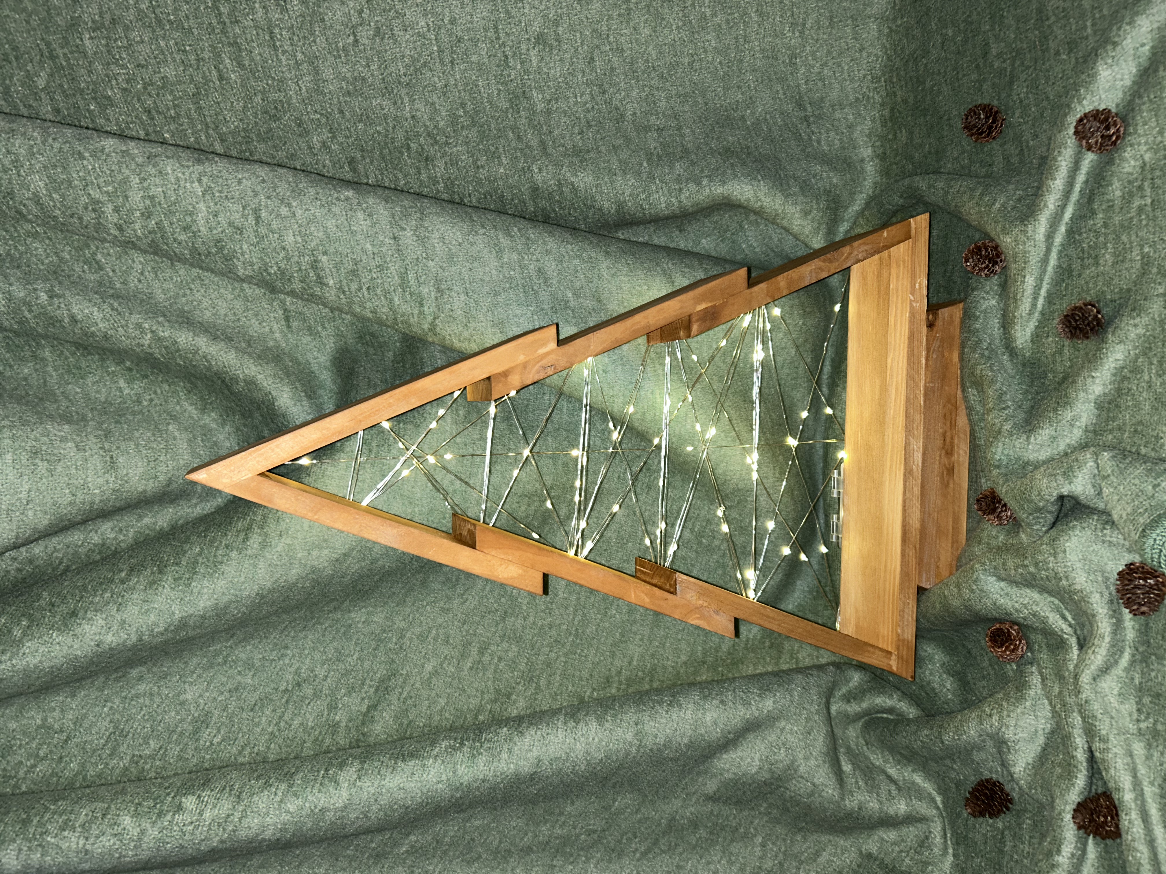 Dieser handgefertigte Holz-Deko-Baum mit integrierter LED-Lichterkette kombiniert natürliche Materialien mit moderner, minimalistischer Ästhetik. Perfekt für skandinavische, rustikale oder moderne Weihnachtsdeko.