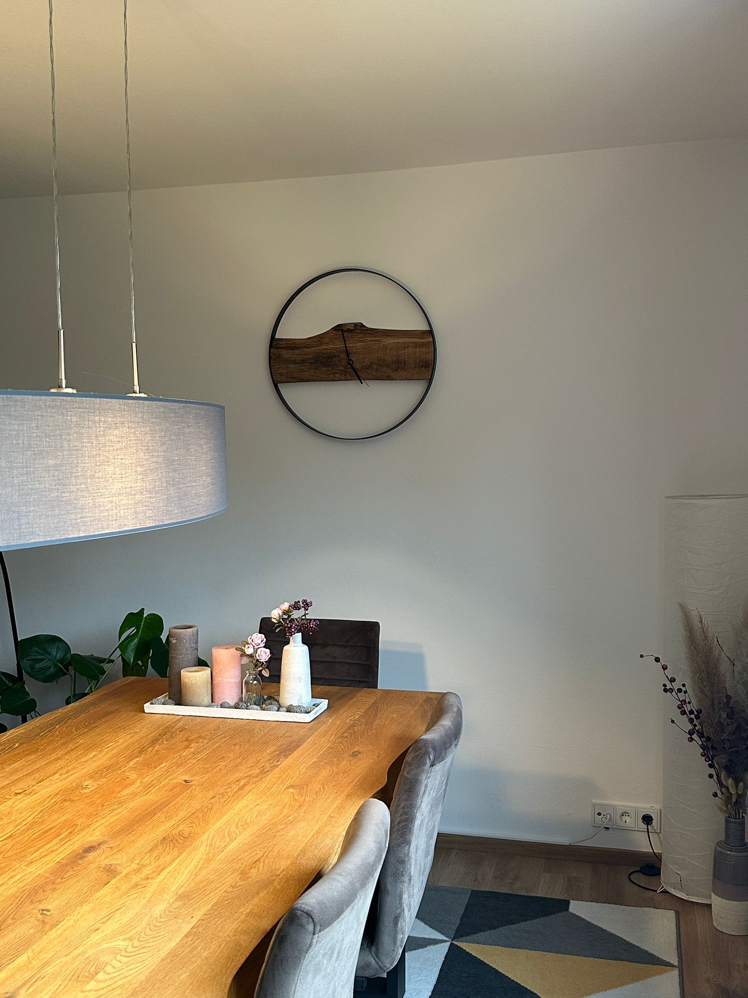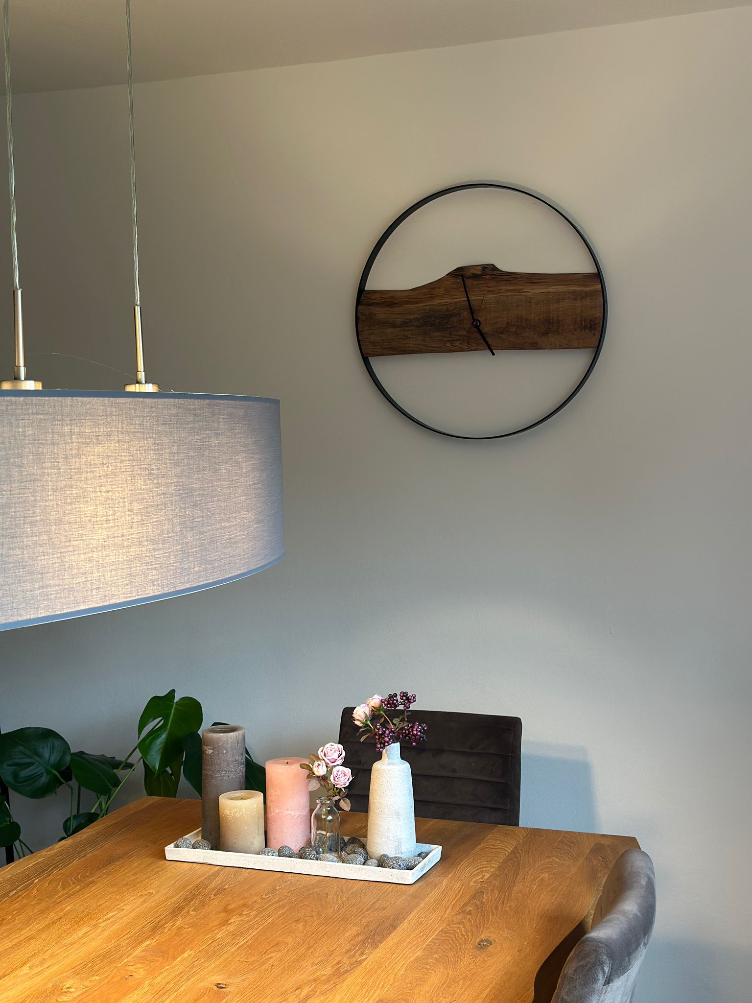 Diese elegante Wanduhr verbindet edles Massivholz mit einem lackierten Metallring und sorgt so für einen modernen, natürlichen Look in jedem Raum. Der Durchmesser der Uhr ist in verschiedenen Ausführungen erhältlich, wobei die Uhr auf den Bildern einen Durchmesser von 60 cm hat, was sie zu einem perfekten Hingucker in Wohnzimmern, Büros oder Küchen macht.