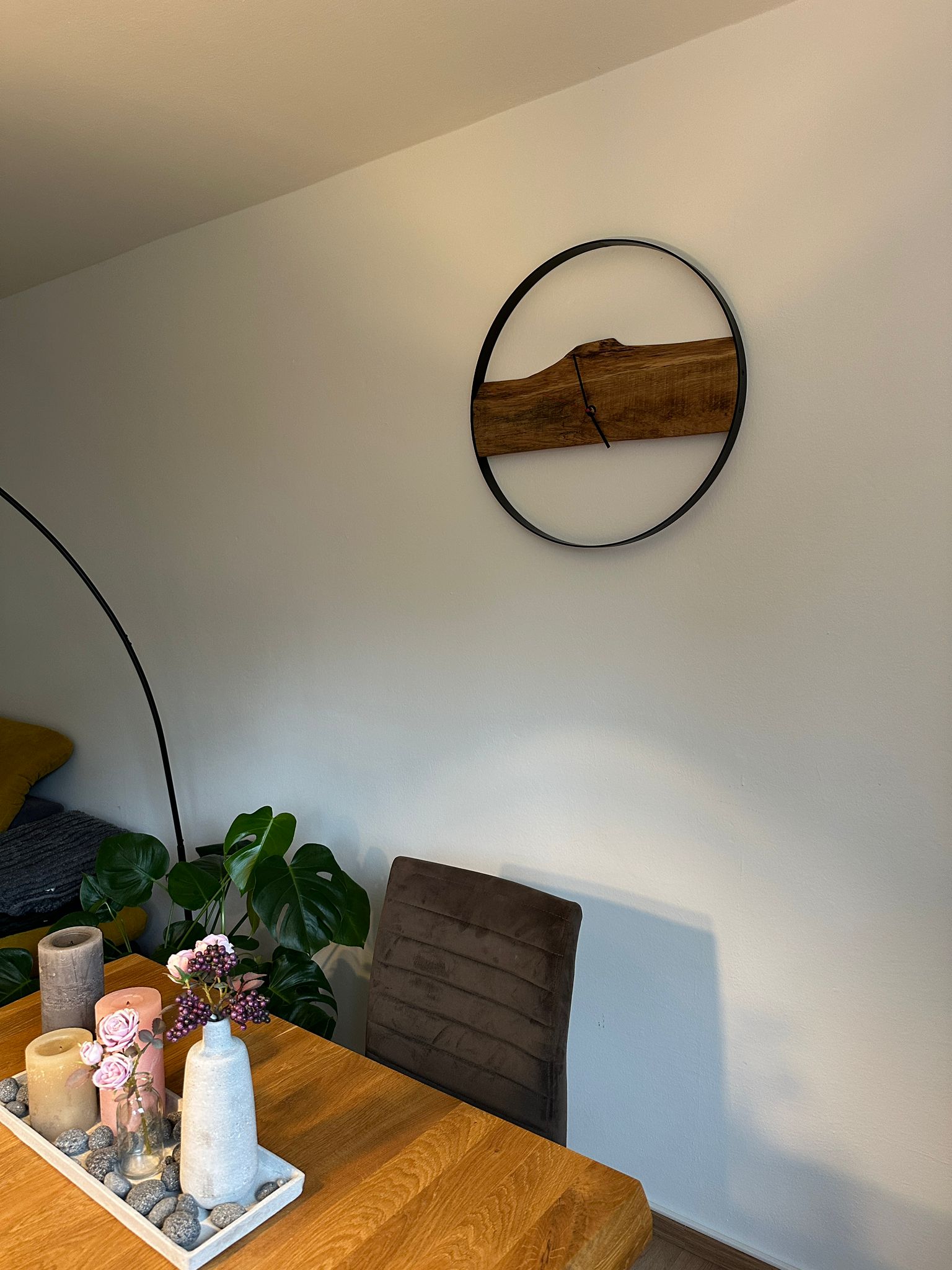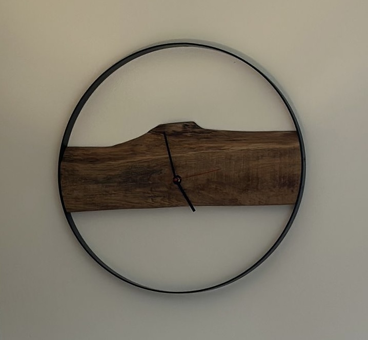 – **Personalisierung:** Auf Anfrage können verschiedene Holzarten und Farben des Metallrings gewählt werden, um die Uhr perfekt auf Ihr Interieur abzustimmen.